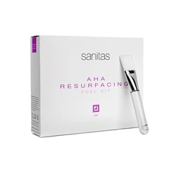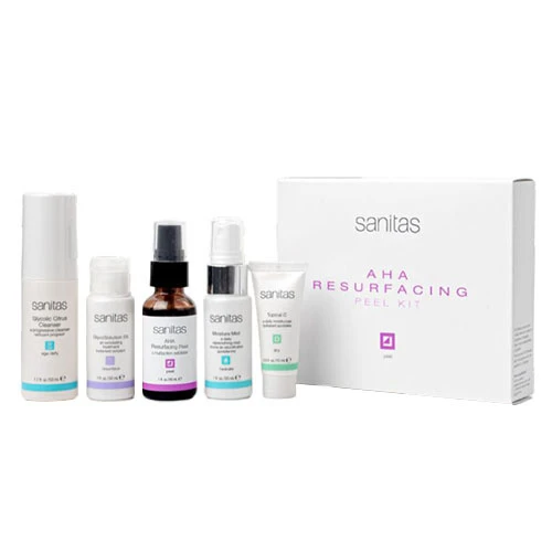- AHA Resurfacing Peel + brush for application, 1 fl. oz./30mL – This professional strength home peel features lactic acid and a clinical dose of Vitamin C. This brightening peel, appropriate for all skin types, provides effective exfoliation and reduces visible fine lines and wrinkles. It also tightens and tones sagging skin, improves skin’s texture, and helps reduce uneven skin tone and discoloration.